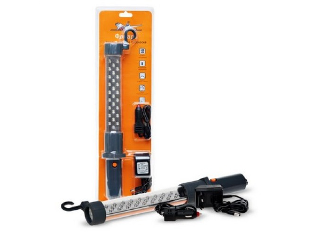 Данная модель фонаря от AILRINE является усовершенствованным изделием, т.к. она оснащена особо мощными источниками света, позволяющими значительно увеличить мощность устройства. Фонарь работает на основе LED светодиодов, которые встроены в корпус изделия. Фонарь представляет собой переносное устройство, подключаемое к прикуривателю автомобиля. AFL-35W-05