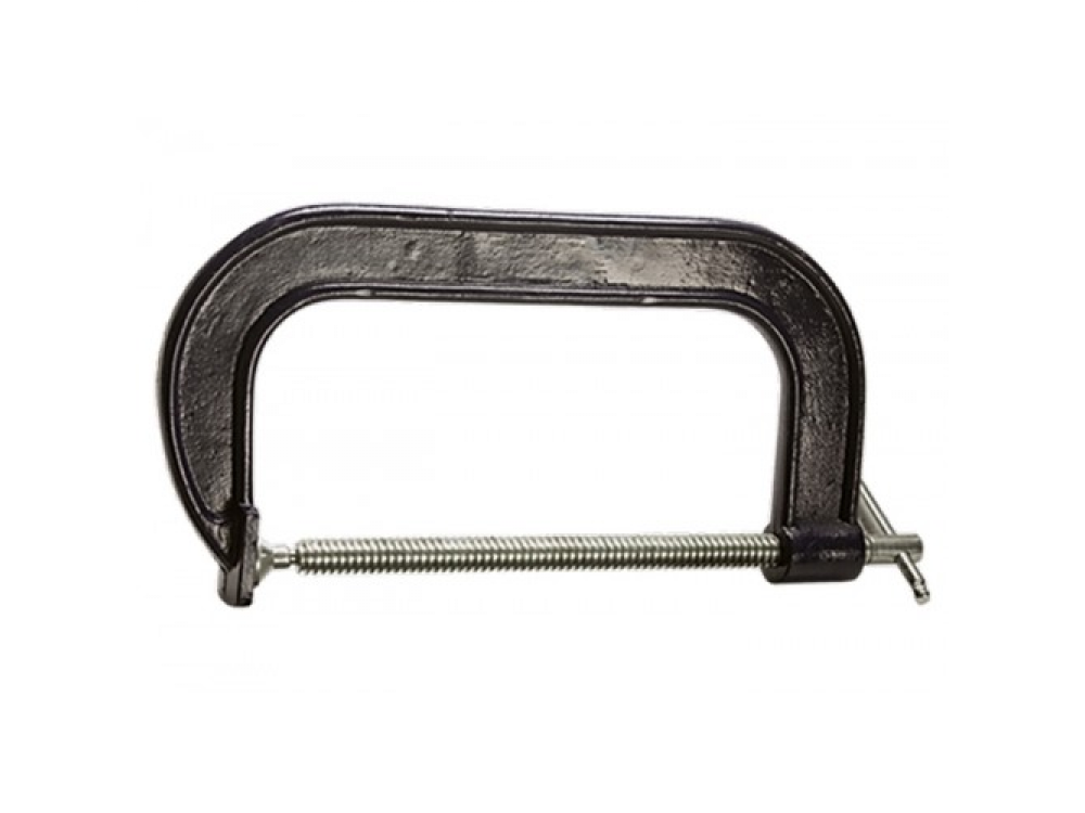 Рама струбцины покрыта цветным лаком. Винт струбцины со специальным зажимом и крупной червячной резьбой позволяет надежно фиксировать предметы.