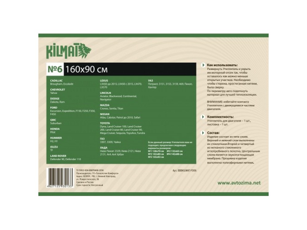 Утеплитель автомобильный KILMAT №6Утеплитель автомобильный KILMAT №6Утеплитель автомобильный KILMAT №6Утеплитель автомобильный KILMAT №6